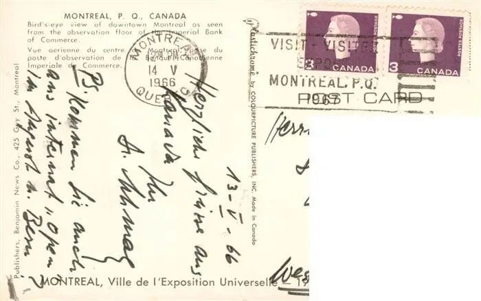 73904702 Montreal_Quebec Birds eye view of downtown as seen from the observation floor of the Imperial Bank of Commerce postalisch gelaufen 1966 Erhaltung siehe scans [FriedD77] [Frierer ]