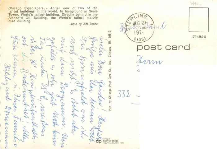 73916531 Chicago_Illinois Skyscrapers Aerial view of two of the tallest buildings in the world postalisch gelaufen 1974 Erhaltung siehe scans [WerneD78] [WernPID7 ]