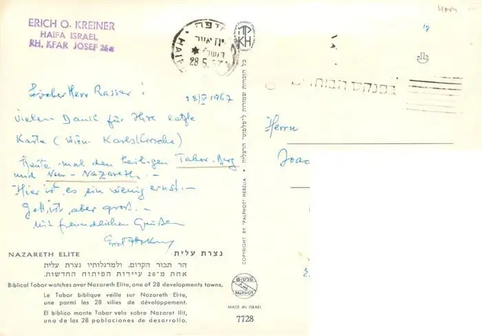 73916550 Haifa_Israel Nazareth Elite Fliegeraufnahme postalisch gelaufen 1967 Erhaltung siehe scans [WerneD78] [WernPID7 ]