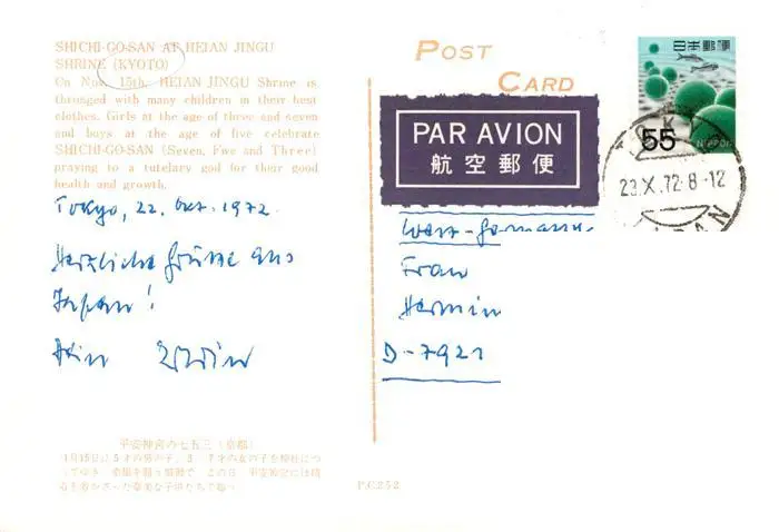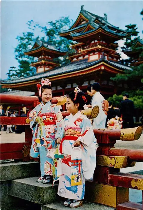 73917942 Kyoto_Japan Shichi Go San at Heian Jingu Shrine postalisch nicht gelaufen nach 1965 Erhaltung siehe scans [WerneD78] [WernPID7 ]