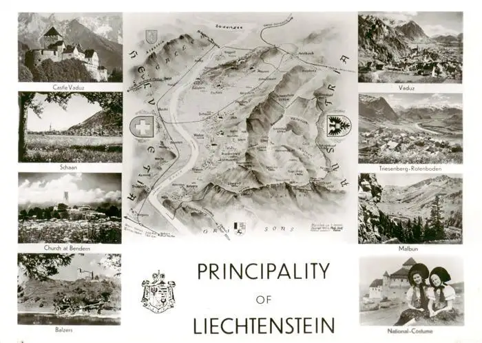 AK / Ansichtskarte 73921180 Liechtenstein_Fuerstentum Castle Vaduz Schaan Church at Bendern Balzers Vaduz Triesenberg Malbun National Costume