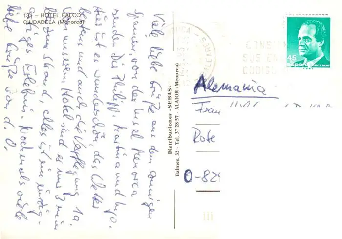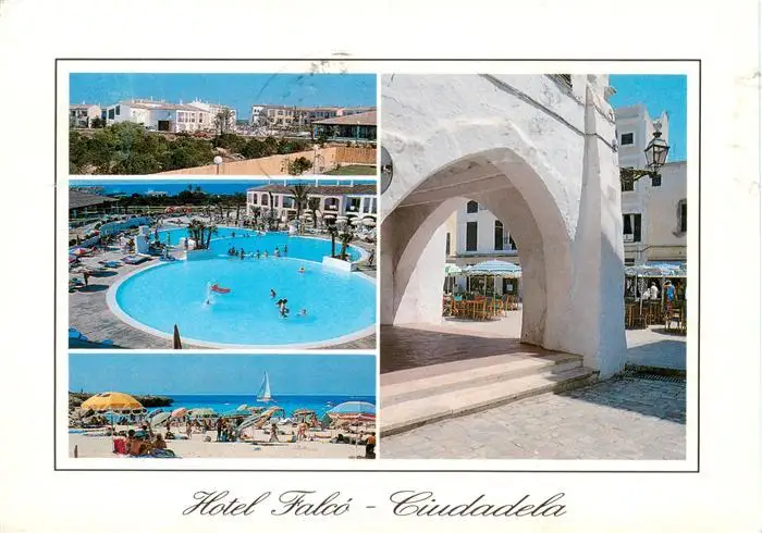 73946860 Ciudadela_Menorca_ES Hotel Falco Swimming Pool Strand postalisch gelaufen 1993 Erhaltung siehe scans [FriedD77] [Frierer ]