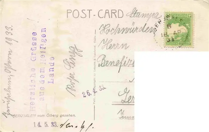 73965298 Jerusalem__Yerushalayim_Israel View from the Mount of Olives postalisch gelaufen 1933 Erhaltung siehe scans [FriedD77] [Frierer ]