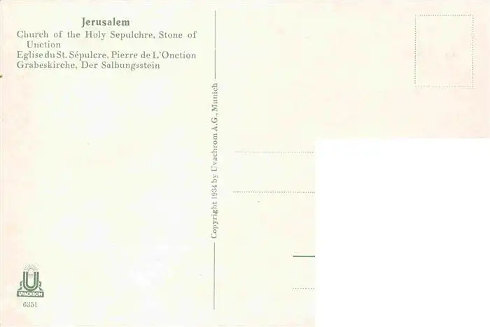 73968738 Jerusalem__Yerushalayim_Israel Church of the Holy Sepulchre Stone of Unction Grabeskirche Salbungsstein postalisch nicht gelaufen 1921-1965 Erhaltung siehe scans [FriedD77] [Frierer ]