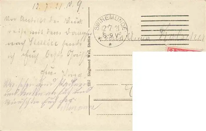 73971267 Swinemuende_SWINOUJSCIE_PL Westmole postalisch gelaufen 1921 Erhaltung siehe scans [FriedD77] [Frierer ]