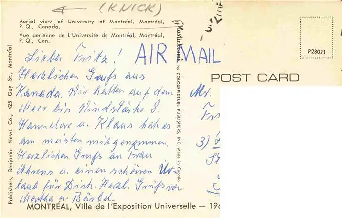 73972573 MONTREAL__QUEBEC_Canada Aerial view of University postalisch gelaufen 1967 Fliegeraufnahme Erhaltung siehe scans [FriedD77] Fliegeraufnahme[Frierer ]