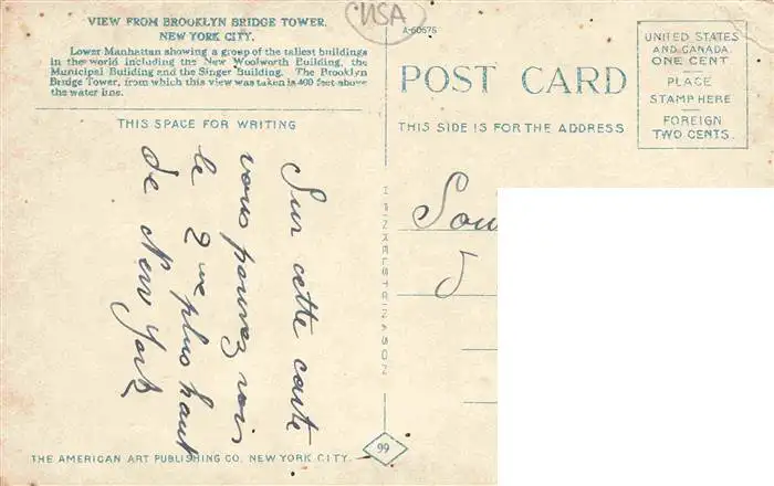 73973380 NEW_YORK_City_USA View from Brooklyn Bridge Tower Illustration postalisch nicht gelaufen 1921-1965 Erhaltung siehe scans [FriedD77] [Frierer ]