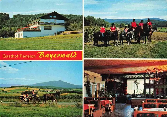 AK / Ansichtskarte 73980836 Bad_Liebenstein Gasthof Pension Bayerwald Reitergruppe Pferdekutsche Gastraum