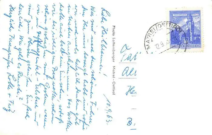 73982622 Matrei_Osttirol_AT Panorama Alpen postalisch gelaufen 1963 Erhaltung siehe scans [FriedD77] [Frierer ]