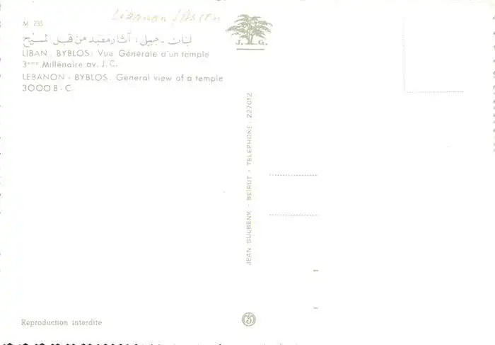 73984520 Byblos Vue generale d'un temple 3eme Millénaire postalisch nicht gelaufen nach 1965 Erhaltung siehe scans [WerneD78] [WernPID7 ]