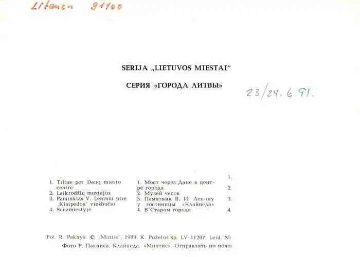 73985995 Klaipeda_Lithuania Bridge over the Dane Museum of Clocks and Watches Monument to V Lenin by the Klaipeda Hotel In the Old Town postalisch nicht gelaufen 1991 Erhaltung siehe scans [WerneD78] [WernPID7 ]