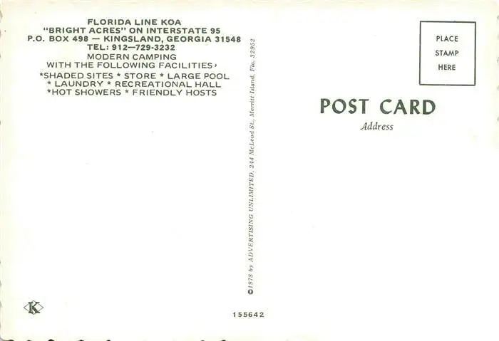 73986681 Kingsland_Georgia Florida Line Koa Bright Acres Modern Camping Swimming Pool postalisch nicht gelaufen nach 1965 Erhaltung siehe scans [FriedD77] [Frierer ]