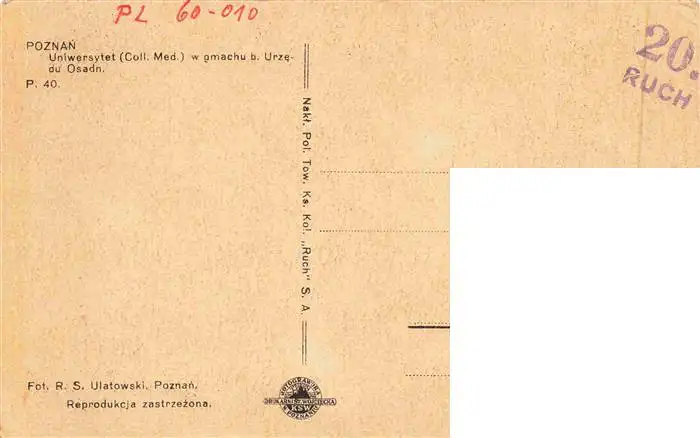 73995729 POZNAN_Posen_PL Uniwersytet Coll Med w gmachu b Urzedu Osadn postalisch nicht gelaufen 1921-1965 Erhaltung siehe scans [WerneD78] [WernPID7 ]