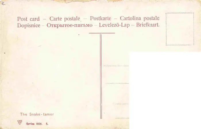 73999006 Schlangenbeschwoerer_Schlange_Snake_Serpent_Serpiente-- Trenkler The Snasket tamer postalisch nicht gelaufen 1921-1965 Erhaltung siehe scans [IrynaD87] [Iryn PID ]