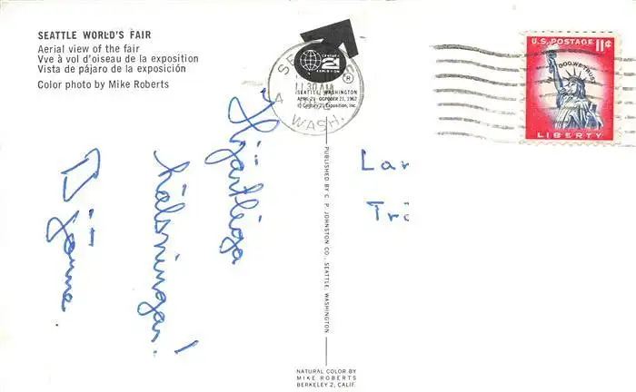 74000596 Seattle_Washington_USA Aerial view of the fair postalisch gelaufen nach 1965 Erhaltung siehe scans [FriedD77] [Frierer ]