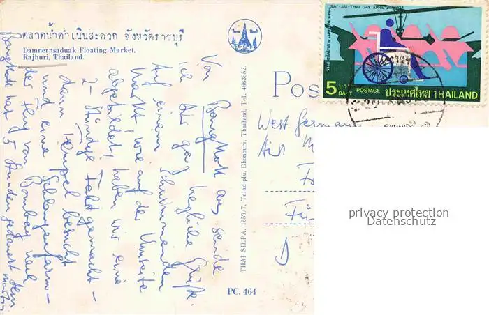 74003918 Rajburi_Thailand Damnernsaduak Floating Market postalisch gelaufen 1977 Erhaltung siehe scans [FriedD77] [Frierer ]