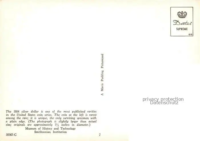 74005164 WASHINGTON__DC_USA US Silver Dollar Museum of History Smithsonian Institution postalisch nicht gelaufen 1921-1965 Erhaltung siehe scans [WerneD78] [WernPID7 ]