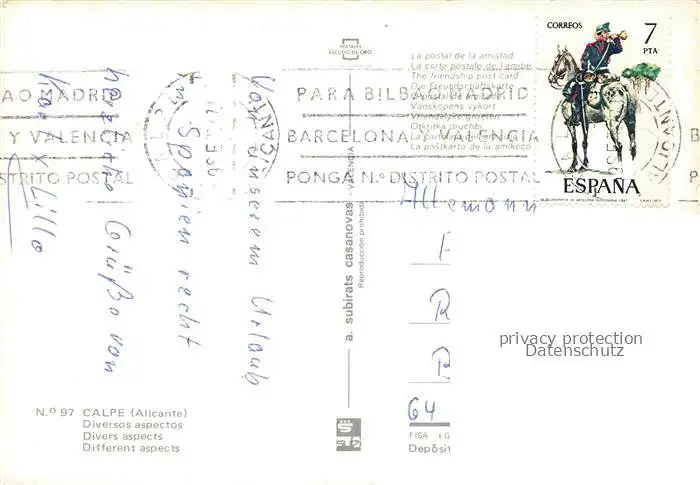 74005803 Calpe_Calp_Alicante_ES Diversos aspectos postalisch gelaufen 1970 Erhaltung siehe scans [FriedD77] [Frierer ]
