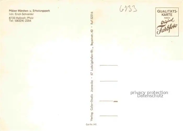 74005843 Hassloch_Pfalz Pfaelzer Maerchen- und Erholungspark postalisch nicht gelaufen nach 1965 Erhaltung siehe scans [FriedD77] [Frierer ]