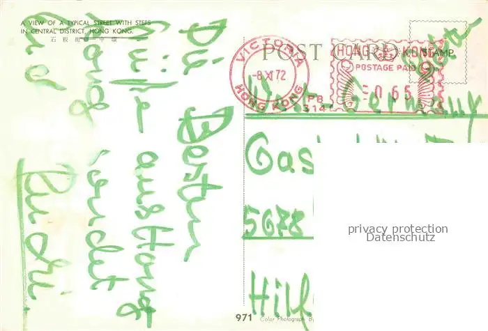 74006324 Hong-Kong_HONGKONG_HK View of a typcial street with steps in central district postalisch gelaufen 1972 Erhaltung siehe scans [FriedD77] [Frierer ]