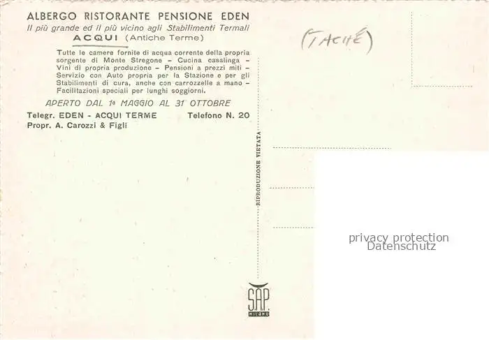 74008001 Acqui Terme Piemonte IT Albergo Pensione Eden postalisch nicht gelaufen Erhaltung siehe scans [FriedD77] [Frierer ]