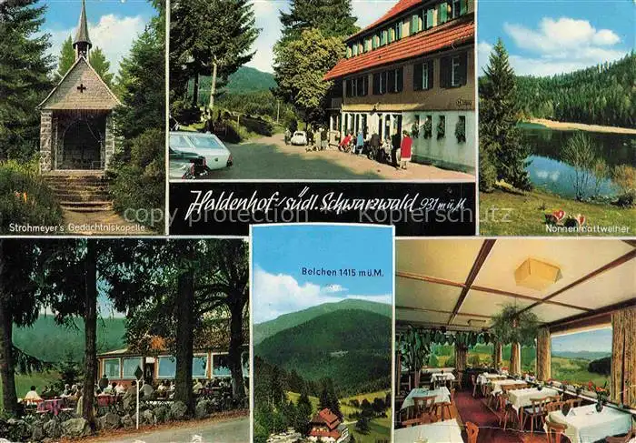 AK / Ansichtskarte 74012645 Neuenweg Gasthof Haldenhof Strohmeyer's Gedaechtniskapelle Nonnenmattweiher Blick zum Belchen Schwarzwald