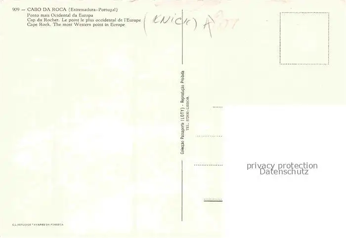 74013652 Cabo Da Roca Cap du Rocher Point le plus occidental de l'Europe vue aérienne postalisch nicht gelaufen Fliegeraufnahme Erhaltung siehe scans [FriedD77]