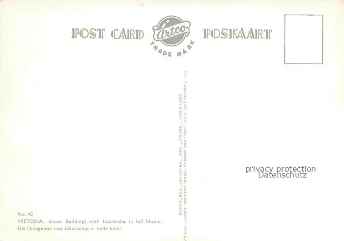 74013952 Pretoria Union Buildings with Jacrandas in full bloom postalisch nicht gelaufen Erhaltung siehe scans [WerneD78]