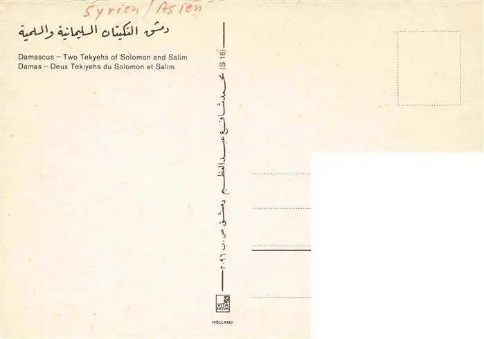 74014869 Damascus Dimashq Damaskus Syria Two Tekyehs of Solomon and Salim postalisch nicht gelaufen Erhaltung siehe scans [WerneD78]