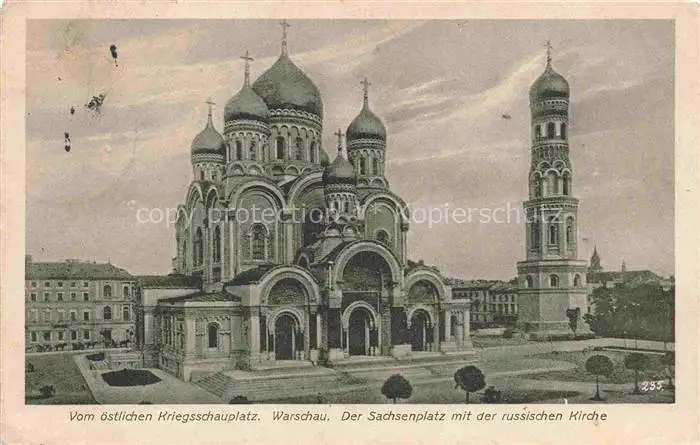 old postcard 74015381 Warschau WARSZAWA PL Der Sachsenplatz mit der russischen Kirche postalisch gelaufen Feldpost - Stempel Erhaltung siehe scans [WerneD78]