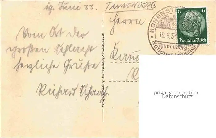 old postcard 74017069 Tannenberg Denkmal Hohenstein Ostpreussen PL Blick aus dem Fahnenturm in den Ehrenhof des Nationaldenkmals postalisch gelaufen Erhaltung siehe scans [FriedD77]