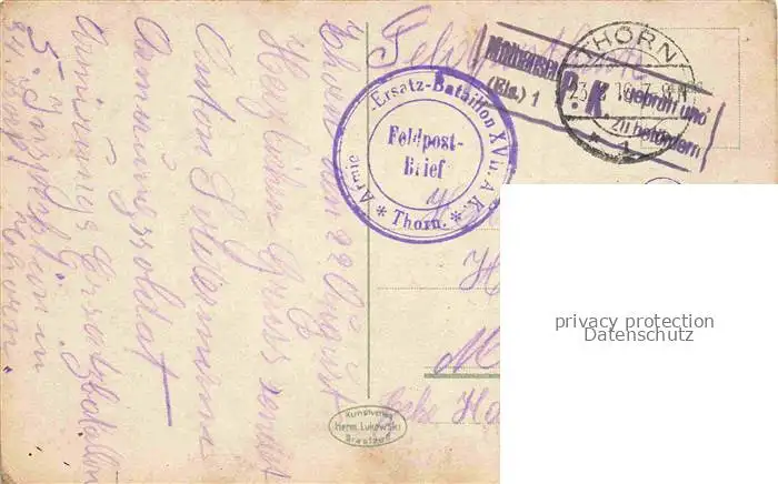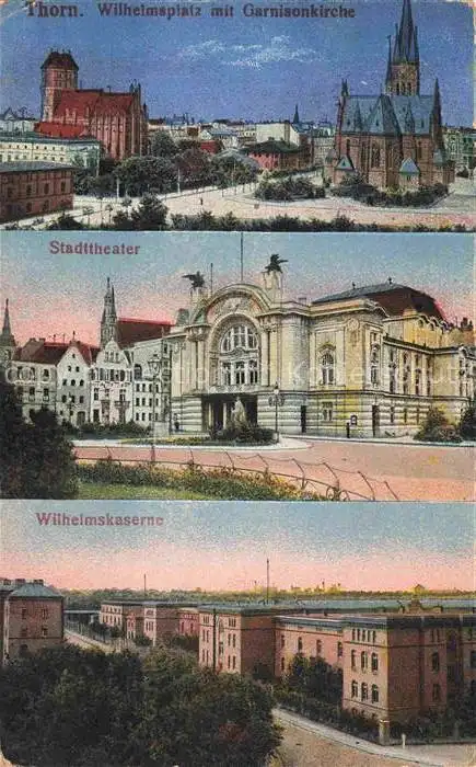 old postcard 74018587 Thorn Westpreussen TORUN PL Wilhelmsplatz mit Garnisonkirche Stadttheater Feldpost postalisch gelaufen Erhaltung siehe scans [WerneD78]