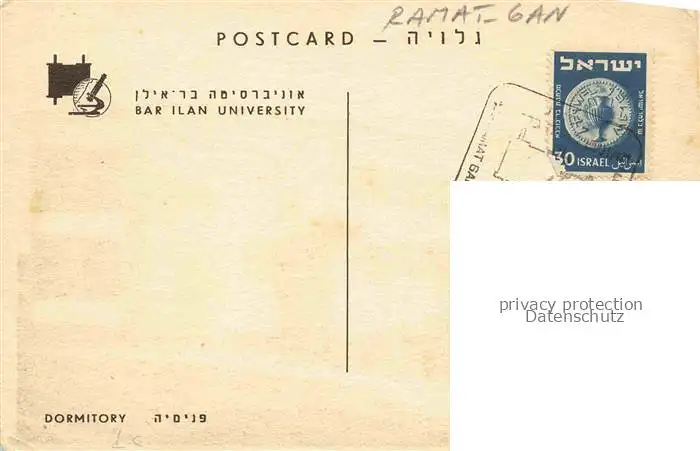 old postcard 74020782 Ramat Gan Tel Aviv Israel Bar Ilan University postalisch gelaufen Erhaltung siehe scans [WerneD78]