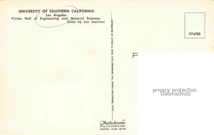 74022996 LOS ANGELES California USA University of Southern California Vivian Hall of Engineering and Material Sciences postalisch nicht gelaufen Erhaltung siehe scans [FriedD77]