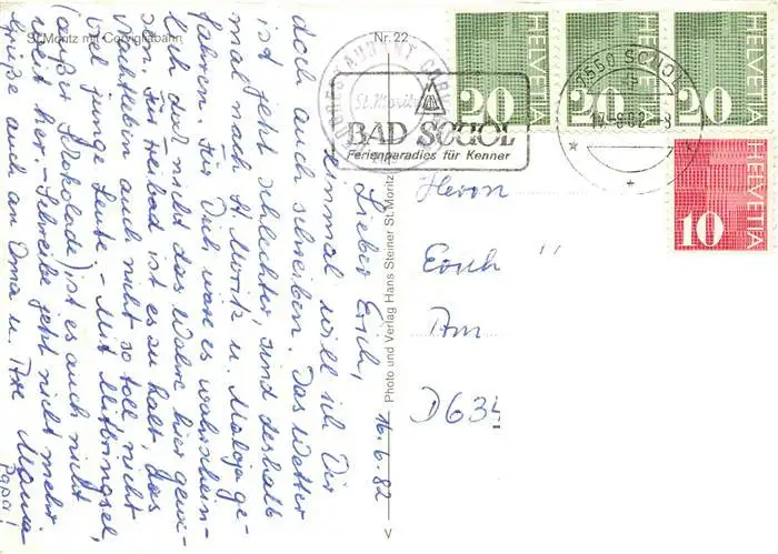 alte Postkarte 74028686 Eisenbahn Railway Chemin de Fer Ferrovia-- St Moritz Corfigliabahn postalisch gelaufen Erhaltung siehe scans [SanaeD93]