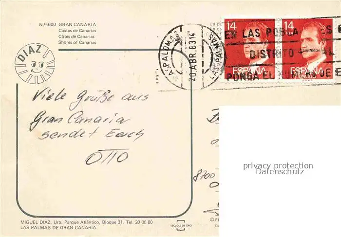 old postcard 74033790 Gran Canaria ES Badenixe am Strand postalisch gelaufen Erhaltung siehe scans [FriedD77]