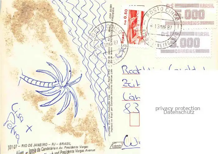 old postcard 74035065 RIO DE JANEIRO Brazil Igreja da Candelária e Avenida Presidente Vargas postalisch gelaufen Erhaltung siehe scans [FriedD77]