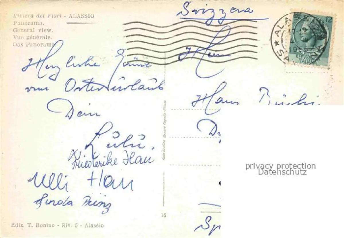 old postcard ALAssIO Savona Liguria IT Panorama postalisch gelaufen Erhaltung siehe scans [IrynaD87]