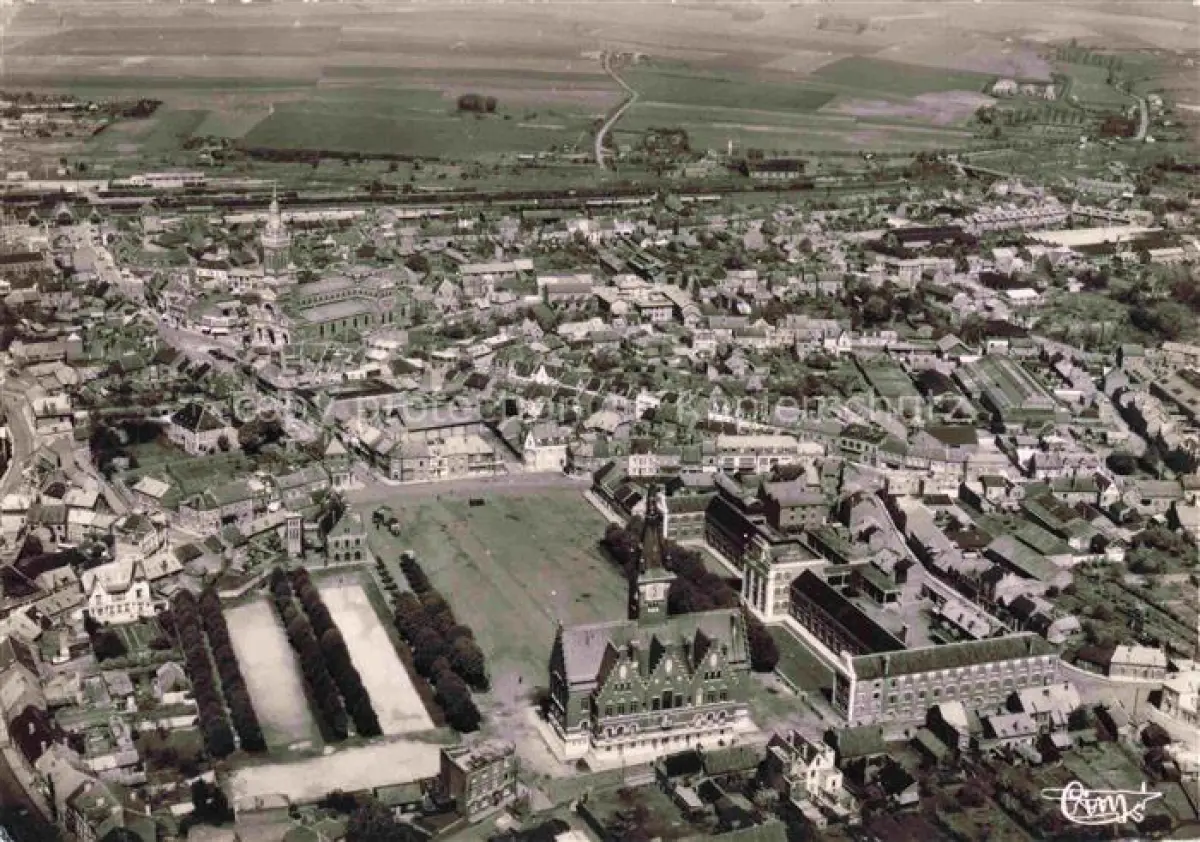 14121099 ALBERT Peronne 80 Somme Vue aérienne Hôtel de Ville Groupe Scolaire postalisch nicht gelaufen Fliegeraufnahme Erhaltung siehe scans [FriedD77] Fliegeraufnahme Frie Katcode 11170080480016