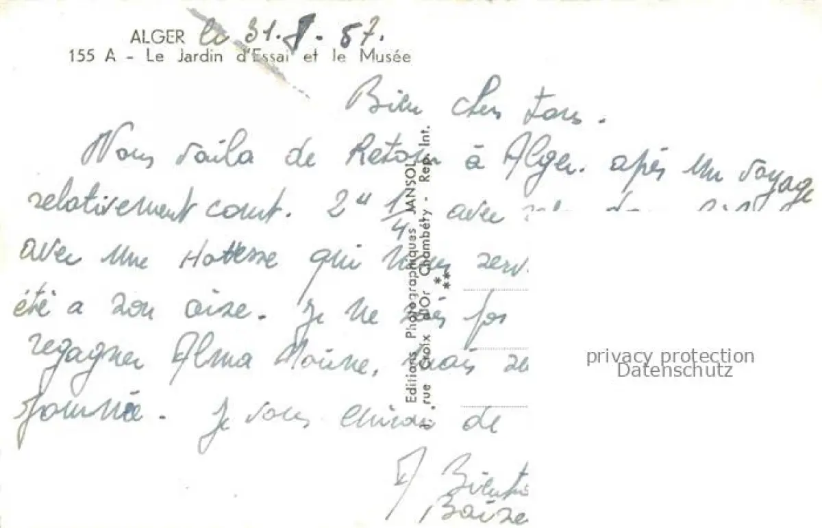 ALGER Algerie Le Jardin d'Essai et le Musee postalisch nicht gelaufen Erhaltung siehe scans [SanaeD93] Sana Katcode 18030