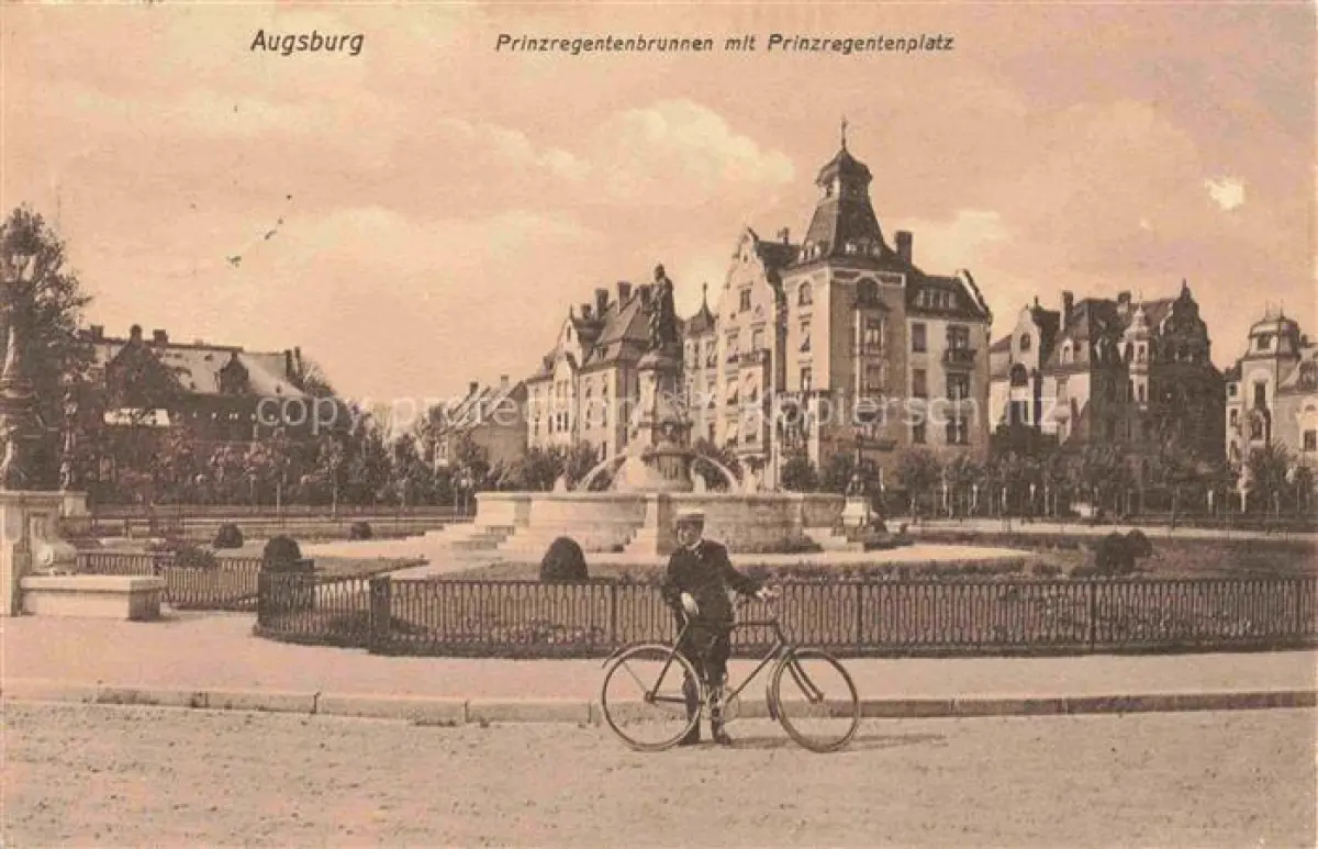 alte Postkarte AUGSBURG CITY Prinzregentenbrunnen mit Prinzregentenplatz postalisch gelaufen Erhaltung siehe scans [FriedD77]