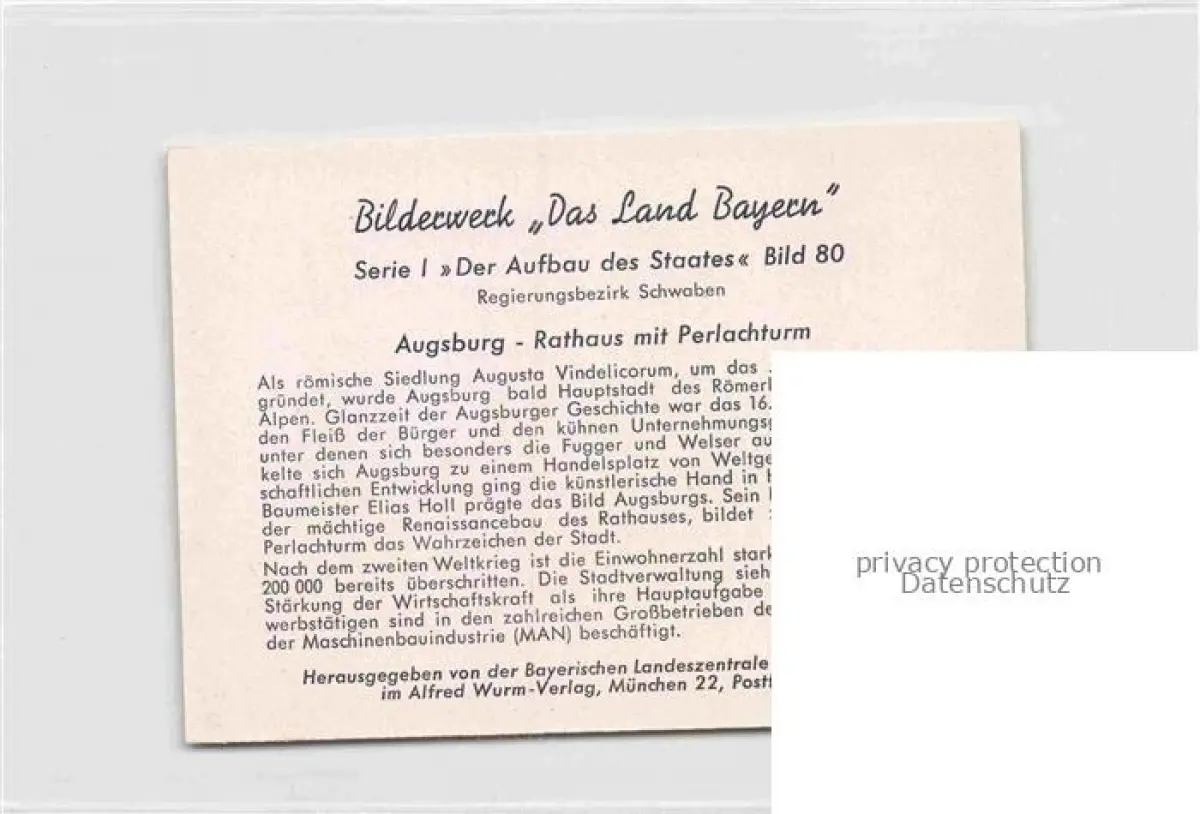 AUGSBURG CITY Rathaus mit Perlachturm postalisch nicht gelaufen Werbekarte (keine Postkarte) Erhaltung siehe scans [WerneD78] Werbekarte (keine Postkarte) Wern Katcode 11110009761000