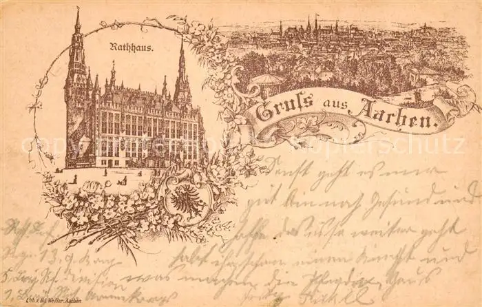 Aachen Rathhaus Aachen postalisch gelaufen 1915 Feldpost auf Karte (Motiv) Erhaltung siehe scans [WerneD78] Feldpost auf Karte (Motiv) WernPID7