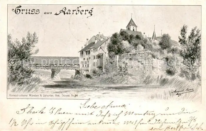 Aarberg_BE Teilansicht m. alter Holzbruecke postalisch gelaufen 1901 Erhaltung siehe scans [LiesaD40] LiesID40