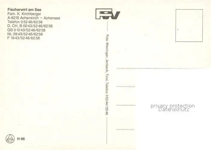 Achenkirch Fischerwirt am See Landschaftspanorama Alpen Achenkirch postalisch nicht gelaufen nach 1965 Erhaltung siehe scans [FriedD77] Frierer