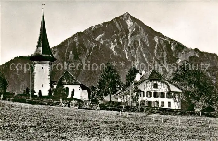 AK / Ansichtskarte Aeschi_BE Kirche Pfarrhaus und Niesen Aeschi_BE