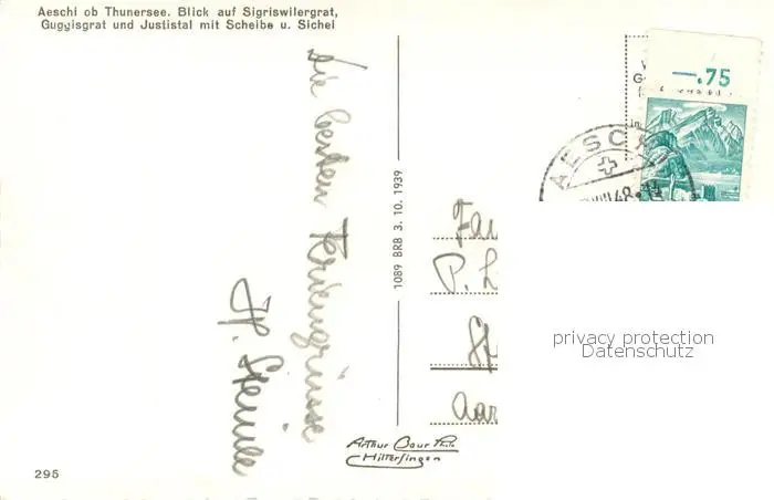 Aeschi_BE mit Sigriswilergrat Guggisgrat und Justistal mit Scheibe und Sichel Aeschi_BE postalisch gelaufen 1948 Erhaltung siehe scans [WerneD78] WernPID7