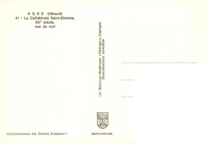 Agde-sur-Mer_34_ Cathédrale Saint Etienne XIIe siècle vue de nuit postalisch nicht gelaufen nach 1965 Erhaltung siehe scans [FriedD77] Frierer