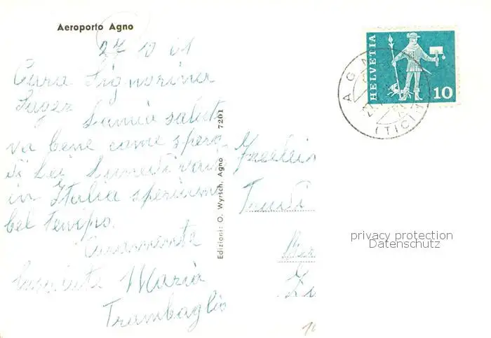 Agno_Lago_di_Lugano_TI Fliegeraufnahme postalisch gelaufen 1961 Erhaltung siehe scans [FriedD77] Frierer