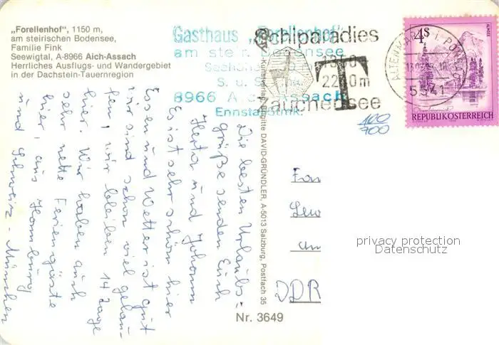 Aich_Assach_Steiermark Gasthof Forellenhof Aich_Assach_Steiermark postalisch gelaufen nach 1965 Erhaltung siehe scans [NatalD47] NataID47